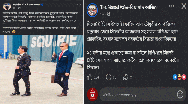 ফাহিম চৌধুরীর আ*প*ত্তি*ক*র স্ট্যাটাসে সিলেটের ম্যাচ বর্জন সাংবাদিকদের